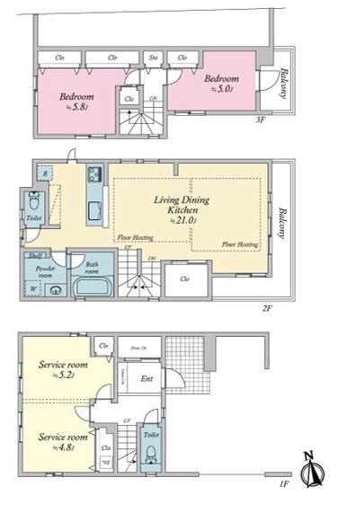 洋室5畳   洋室5.8畳   洋室21畳   S5.2畳   S4.8畳